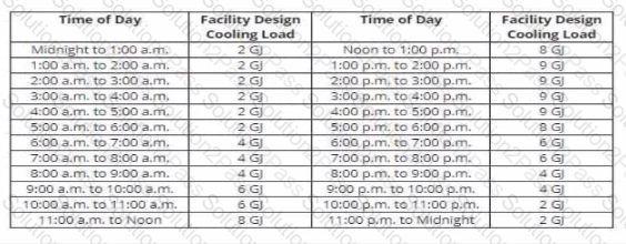 A facility has the thermal cooling load profile shown in the table below. The utility rate traffic has an no-peak time-of-use period that begins at 10:00 a.m ends at 7:00 p.m. What chiller capacity (output) is required for a load-leveling operating strategy?