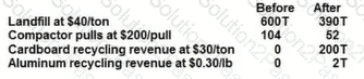 Cardboard recycling revenue at $30/ton: Before 0 → After 200T