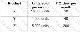 A warehouse manager is performing an ABC segmentation of the products in the warehouse Based on the three items shown below, what is the correct warehouse segmentation for these items from the warehouse manager's perspective?