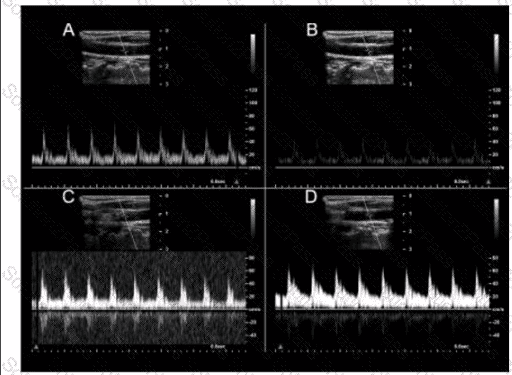 Which pulsed-wave Doppler adjustment would be appropriate to correct the aliasing seen in this image?