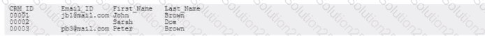 A company has two identities (CRM ID and Email ID) that can be used to define their customers in their customer relationship management (CRM) system However, not all customers have provided their Email ID. but all customers have a unique CRM ID The CRM data stored in the system takes the form: