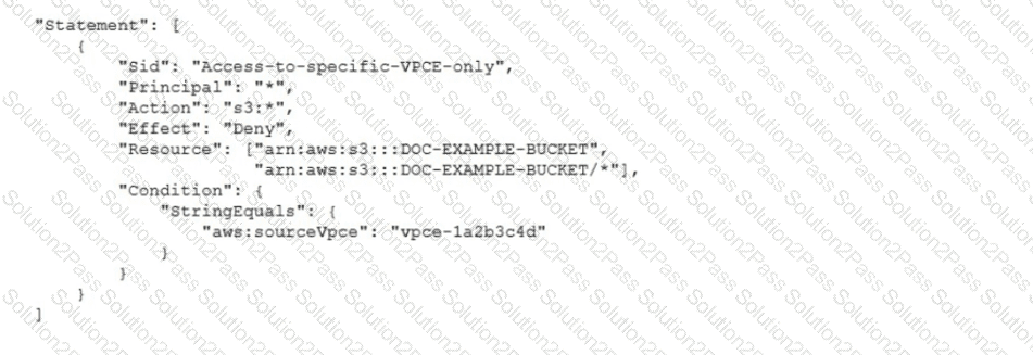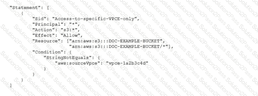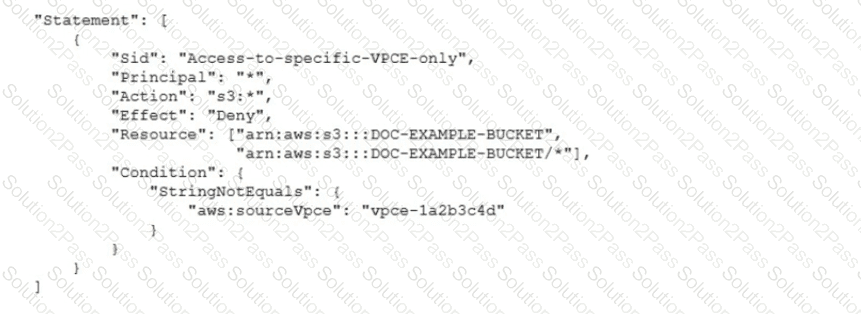 A security engineer needs to configure an Amazon S3 bucket policy to restrict access to an S3 bucket that is named DOC-EXAMPLE-BUCKET. The policy must allow access to only DOC-EXAMPLE-BUCKET from only the following endpoint vpce-1a2b3c4d. The policy must deny all access to DOC-EXAMPLE-BUCKET if the specified endpomt is not used.
