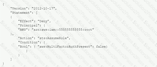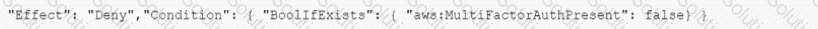 A company's Security Auditor discovers that users are able to assume roles without using multi-factor authentication (MFA). An example of a current policy being applied to these users is as follows: