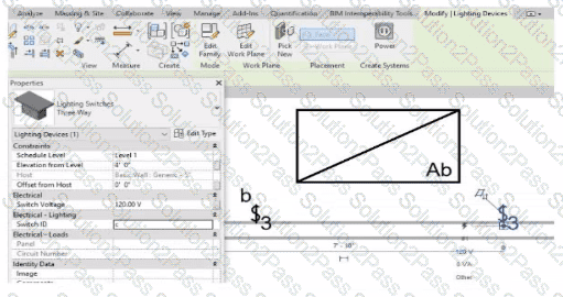 An electrical designer is trying to add the selected three-way switch to the existing switch system "b". The designer is unable to add the switch to the switch system.