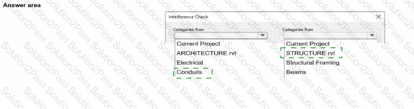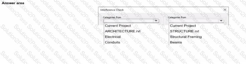 An electrical designer needs to check for Interferences between conduit in the host model and beams in a linked structure model in the Interference Check dialog, select the items that the designer must select to perform the interference check. (Select two.)