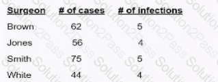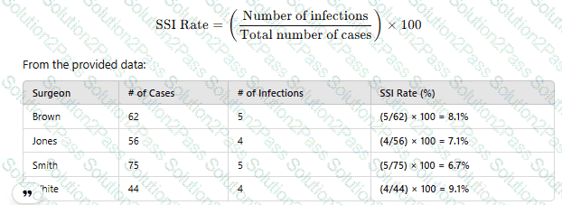 Surgical site infection (SSI) data for the previous quarter reveal the following numbers. The surgeon with the highest infection rate is Doctor