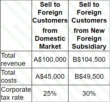 A company is considering either directly exporting its product to customers in a foreign country or setting up a subsidiary in the foreign country to manufacture and supply customers in that country.