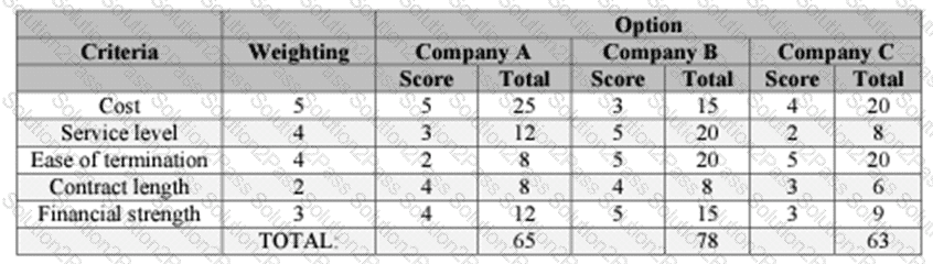 Explain which company you would award the contract to base on the weighted score card in table below.