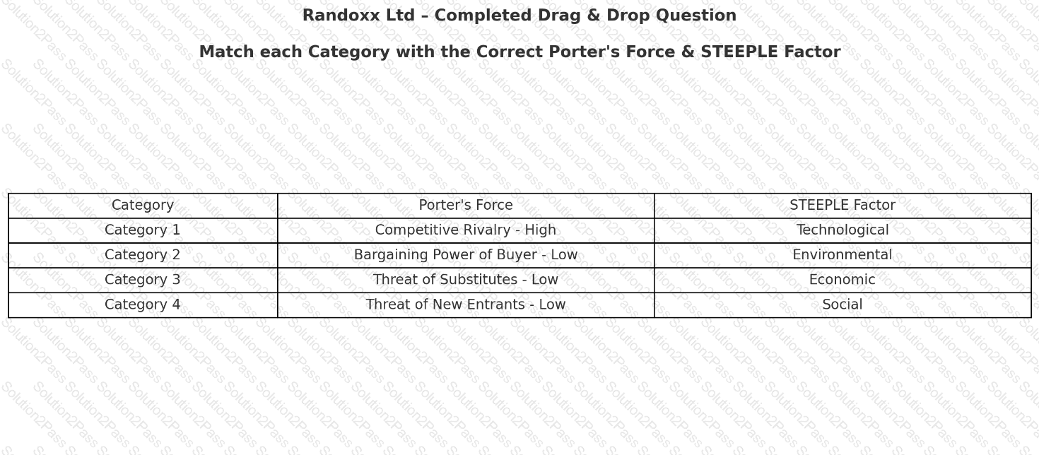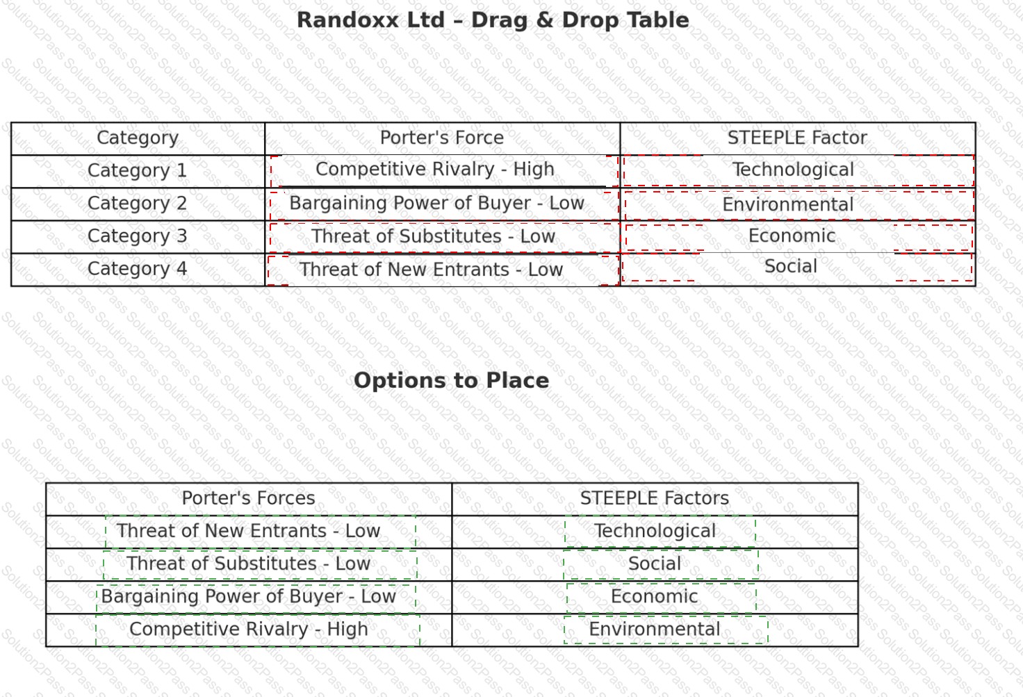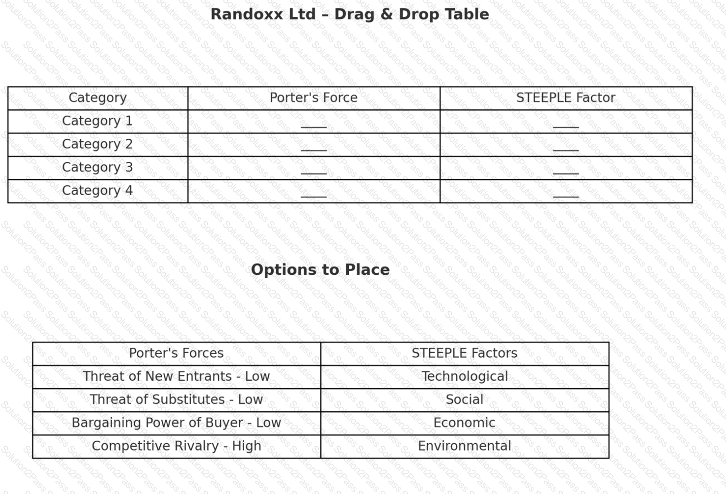 Complete the table below by identifying each category’s Porter’s Force driver and STEEPLE factor challenge. Each response should be used only once.