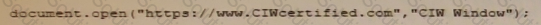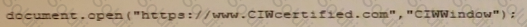 Janice needs to create a pop-up window that will open a Web document in a new browser window. Which code statement should she use?