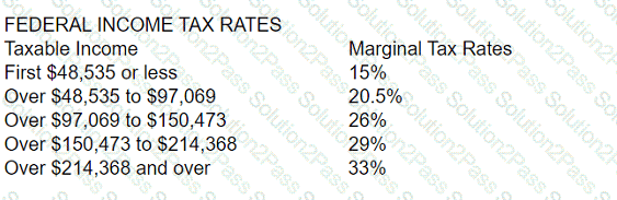 Kerry's total income this past year was $100,000 and she claimed a tax deduction of $2,000. When the tax return is filed, what would be the federal tax payable when applying the following federal tax rates?