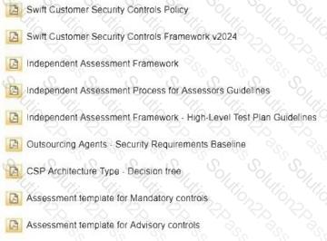 | Preparation Resources | 1. Swift CSP Documentation 2. Swift CSP Assessor Training Course 3. Practice exams 4. Swift Security and Risk Guidelines |