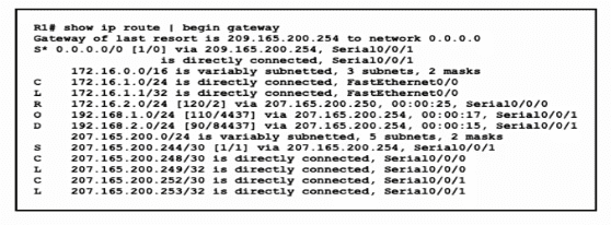 Router R2 is configured with multiple routes to reach network 10 1.1 0/24 from router R1. What protocol is chosen by router R2 to reach the destination network 10.1 1 0/24?