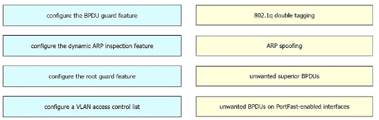 Drag and drop the Cisco Wireless LAN Controller security settings from the left onto the correct security mechanism categories on the right.