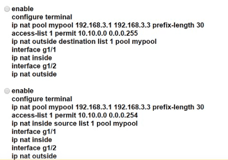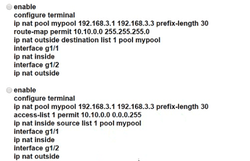 An engineer is configuring NAT to translate the source subnet of 10.10.0.0/24 to any of three addresses 192.168.30.1, 192.168.3.2, 192.168.3.3 Which configuration should be used?