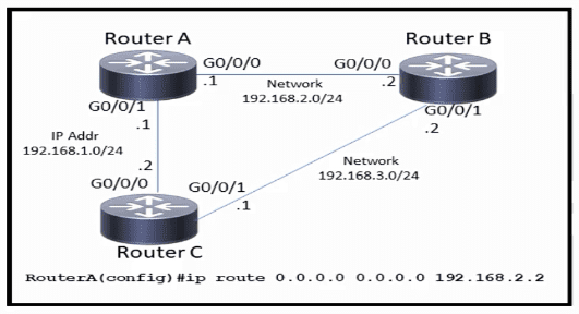 A company is configuring a failover plan and must implement the default routes in such a way that a floating static route will assume traffic forwarding when the primary link goes down. Which primary route configuration must be used?