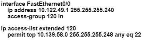 An engineer is configuring remote access to a router from IP subnet 10.139.58.0/28. The domain name, crypto keys, and SSH have been configured. Which configuration enables the traffic on the destination router?