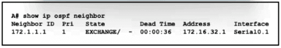 An engineer assumes a configuration task from a peer Router A must establish an OSPF neighbor relationship with neighbor 172 1 1 1 The output displays the status of the adjacency after 2 hours. What is the next step in the configuration process for the routers to establish an adjacency?
