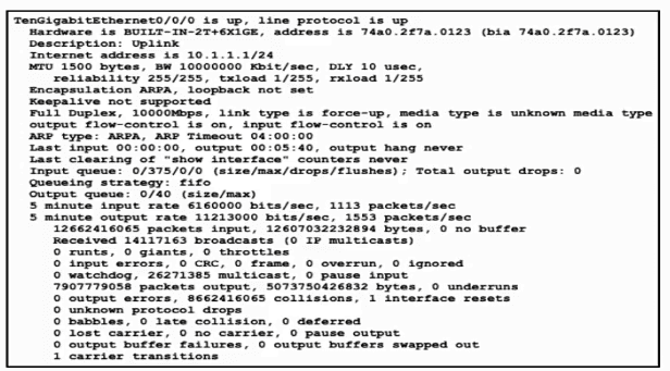 Traffic that is flowing over interface TenGigabitEthernet0/0 experiences slow transfer speeds. What is the reason for the issue?