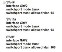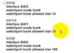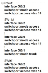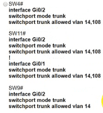 • The SW4 interface Gi0/1 and Gi0/0 on SW9 have been configured