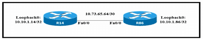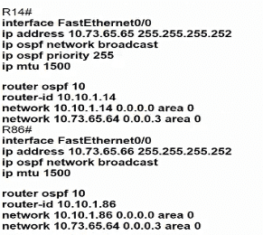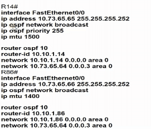 Which configuration allows routers R14 and R86 to form an OSPFv2 adjacency while acting as a central point for exchanging OSPF information between routers?