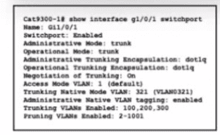A network administrator configures an interface control re switch so that it connects to interface Gi1/0/1 on switch Cat9300-1. Which configuration must be applied to the new interface?