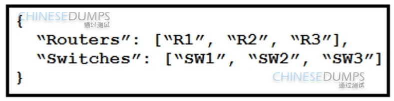 Refer to the exhibit. What is represented by “R1” and “SW1” within the JSON output?