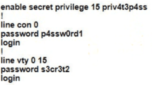 • The password for privileged EXEC mode is pnv4t3p4ss Which command sequence must the engineer configured