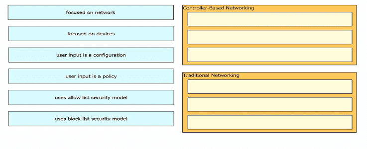 Drag and drop the characteristics of networking from the left onto the networking types on the right.