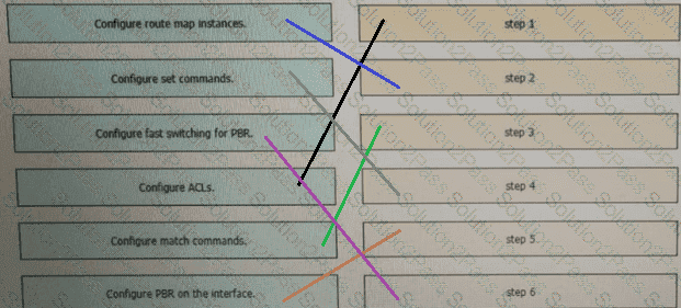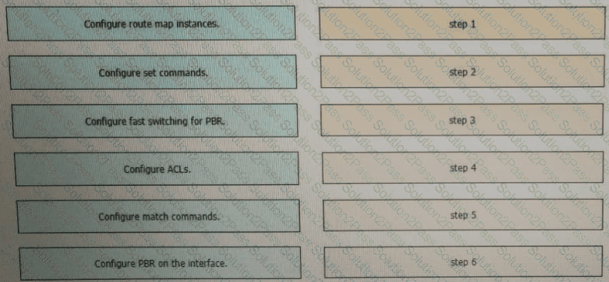 Drag and drop the actions from the left into the correct order on the right to configure a policy to avoid following packet forwarding based on the normal routing path.
