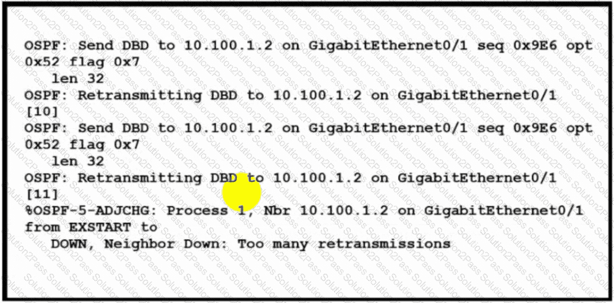 A network administrator reviews the branch router console log to troubleshoot the OSPF adjacency issue with the DR router. Which action resolves this issue?