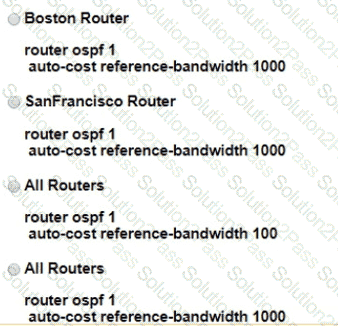 SanFrancisco and Boston routers are choosing slower links to reach each other despite the direct links being up Which configuration fixes the issue?