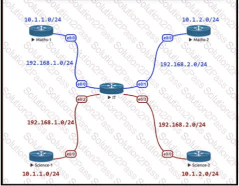 The Math and Science departments connect through the corporate. IT router but users in the Math department must not be able to reach the Science department and vice versa Which configuration accomplishes this task?