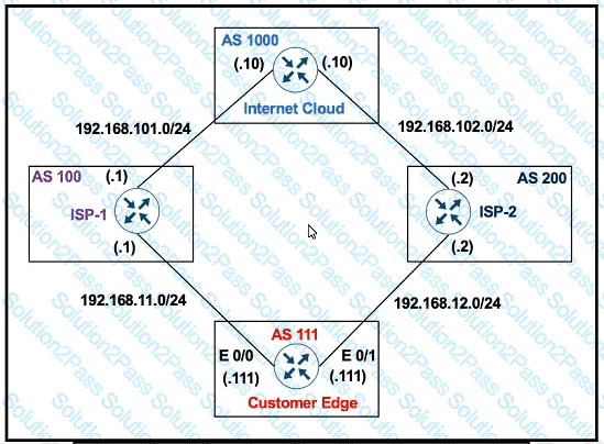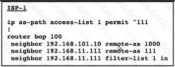 Refer to the exhibit. AS 111 mut not be used as a transit AS, but ISP-1 is getting ISP-2 routes from AS 111. Which configuration stops Customer AS from being used as a transit path on ISP-1?