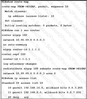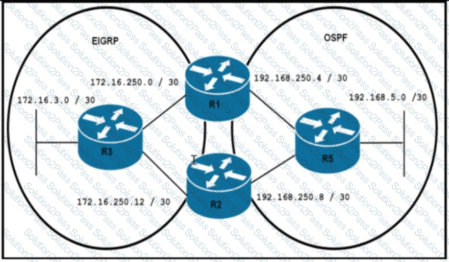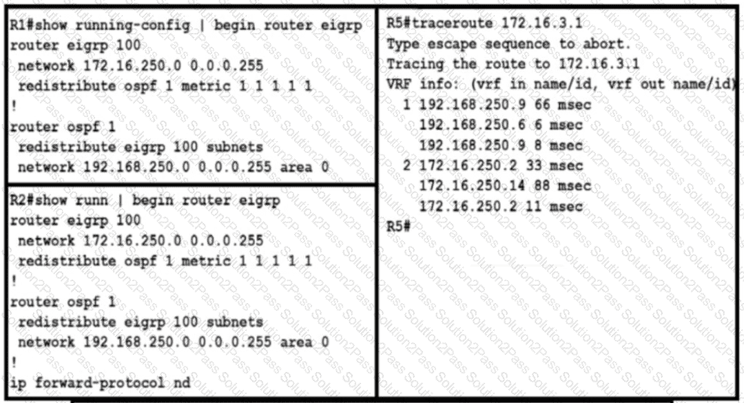 Mutual redistribution is enabled between RIP and EIGRP on R2 and R5. Which configuration resolves the routing loop for the 192.168.1.0/24 network?