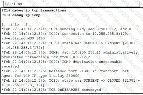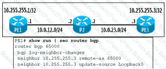 Refer to the exhibit. The administrator is troubleshooting a BGP peering between PE1 and PE3 that is unable to establish Which action resolves the issue?