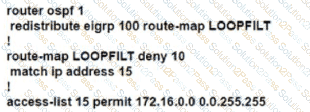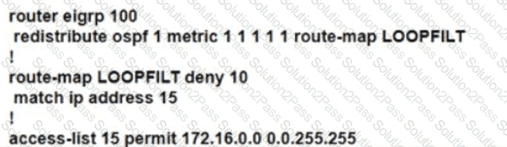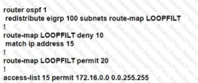 Refer to the exhibit. An engineer Is troubleshooting a routing loop on the network to reach the 172.16.3.0/16 from the OSPF domain. Which configuration on router R1 resolves the Issue?