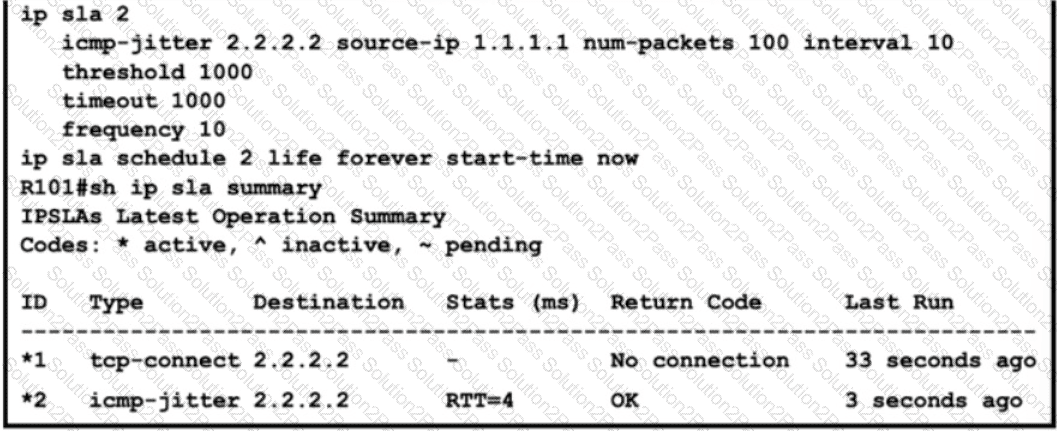 Refer to the exhibit While troubleshooting an issue on the network, an engineer notices that a TCP Connect operation failed on port 3000 between R101 and R201. Which command must be configured on R201 to respond to the R101 IP SLA configurations with a control connection on UDP port 1967?