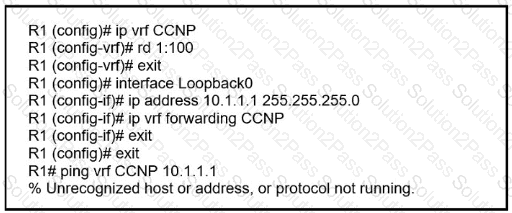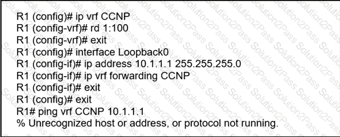 Refer to the exhibit Which command must be configured to make VRF CCNP work?