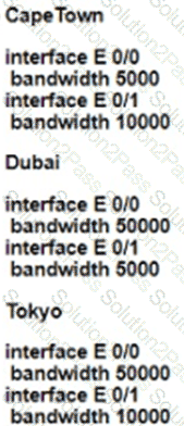 The network administrator must configure Cape Town to reach Dubai via Tokyo based on the speeds provided by the service provider. It was noticed that Cape Town is reaching Dubai directly and failed to meet the requirement. Which configuration fixes the issue?