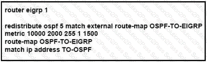 Which routes from OSPF process 5 are redistributed into EIGRP?