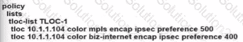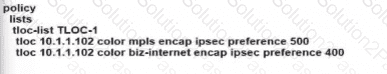 An engineer configures Rome WAN Edge 10 use MPLS cloud as the preferred link to reach Paris WAN Edge and use biz-internet as a backup. Which policy configuration must be led in the outbound direction toward Rome to accomplish the task?