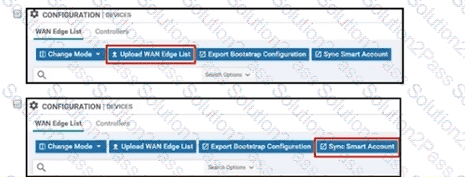 An administrator must deploy the controllers using the On-Prem method while vManage can access the PnP portal from inside How are the two WAN Edge authorized allowed lists to be made available to vManage? (Choose two)