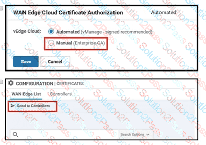 Which two configurations are needed to get the WAN Edges registered with the controllers when certificates are used? (Choose two)