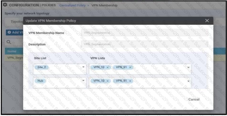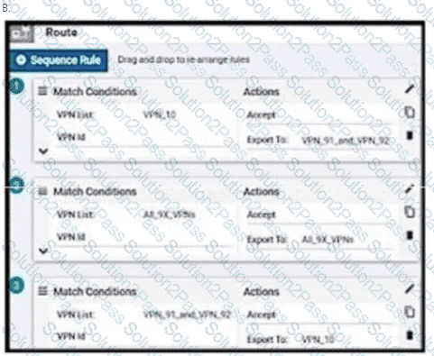 An enterprise has hub and spoke topology where it has several VPNs. An engineer must allow users in VPN91 to reach users in VPN92 and VPN10 to reach VPN91 and VPN92. Which configuration meets these requirements?