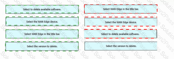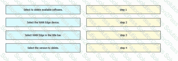 Drag and drop the steps from the left into the order on the right to delete a software image for a WAN Edge router starting with Maintenance > Software Upgrade > Device list on vManage.