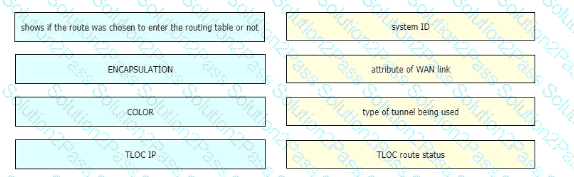 Drag and drop the route verification output from show omp tlocs from the left onto the correct explanations on the right.