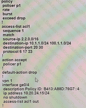 An engineer configures policing with a rate of 125 Bps and a burst rate of 8000 bits, as shown here: