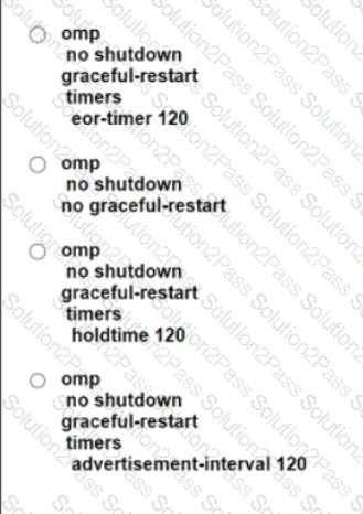 A company deploys a Cisco SD-WAN solution but has an unstable Internet connection. When the link to vSmart comes back up, the WAN Edge router routing table is not refreshed, and some traffic to the destination network is dropped. The headquarters is the hub site, and it continuously adds new sites to the SD-WAN network. An engineer must configure route refresh between WAN Edge and vSmart within 2 minutes. Which configuration meets this requirement?