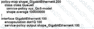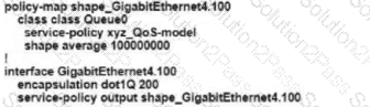 Refer to the exhibit An engineer is configuring a QoS policy to shape traffic for VLAN 100 on a subinterface Which policy configuration accomplishes the task?